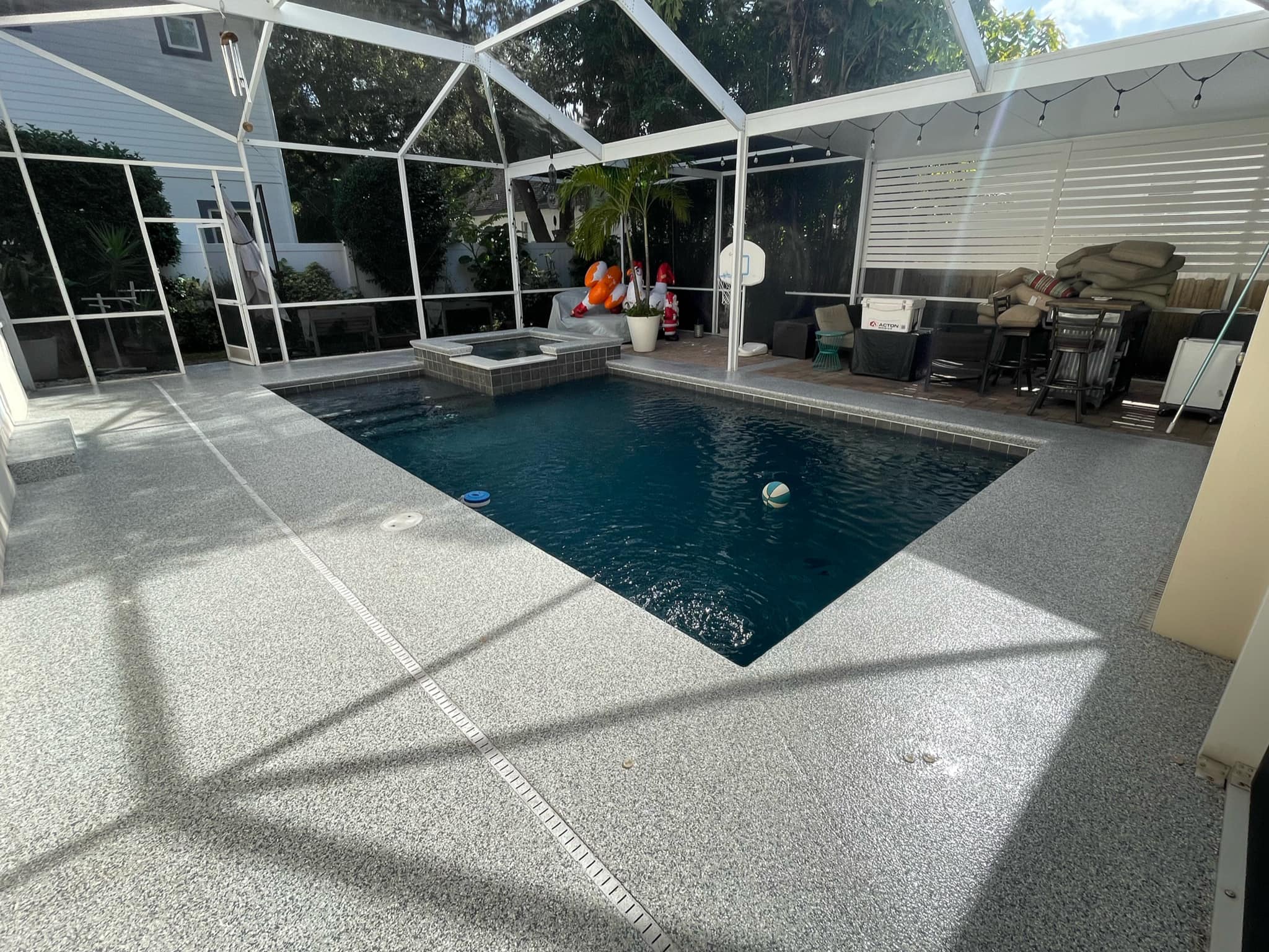 Titan Garage Flooring Applications brings advanced polyaspartic outdoor flooring technology to Alabam’s premier locations, including Huntsville and Madison, AL areas. Our polyaspartic flooring is engineered to set the standard for durability, aesthetics, and performance, surpassing traditional outdoor living epoxy coatings. With superior resistance to abrasions, chemicals, and UV rays, our flooring ensures a long-lasting, pristine finish that won’t yellow or peel over time. The rapid curing times allow for a quick and efficient installation, minimizing downtime and letting you enjoy your newly upgraded patio sooner. The seamless, non-slip surface enhances safety while simplifying cleaning and maintenance. Choose Titan’s polyaspartic outdoor living flooring for a resilient, attractive, and low-maintenance solution that significantly enhances the value and functionality of your outdoor space.
