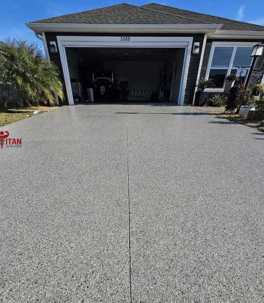 Titan Garage Flooring offers highly durable garage flooring and concrete coating systems that outperform traditional coatings. Our advanced flooring solutions are designed to resist chipping, cracking, and peeling, and they feature rapid curing times—you can walk on your new floors in just 6 hours and park your car or replace furnishings within 24 hours. We provide a wide variety of garage flooring finishes, including full broadcast options that mimic the look of natural stone, and a selection of over 150 colors to suit your style. If you’re in the Huntsville or Madison, AL areas, Titan’s flooring solutions will enhance the aesthetics and longevity of your concrete or garage floors.