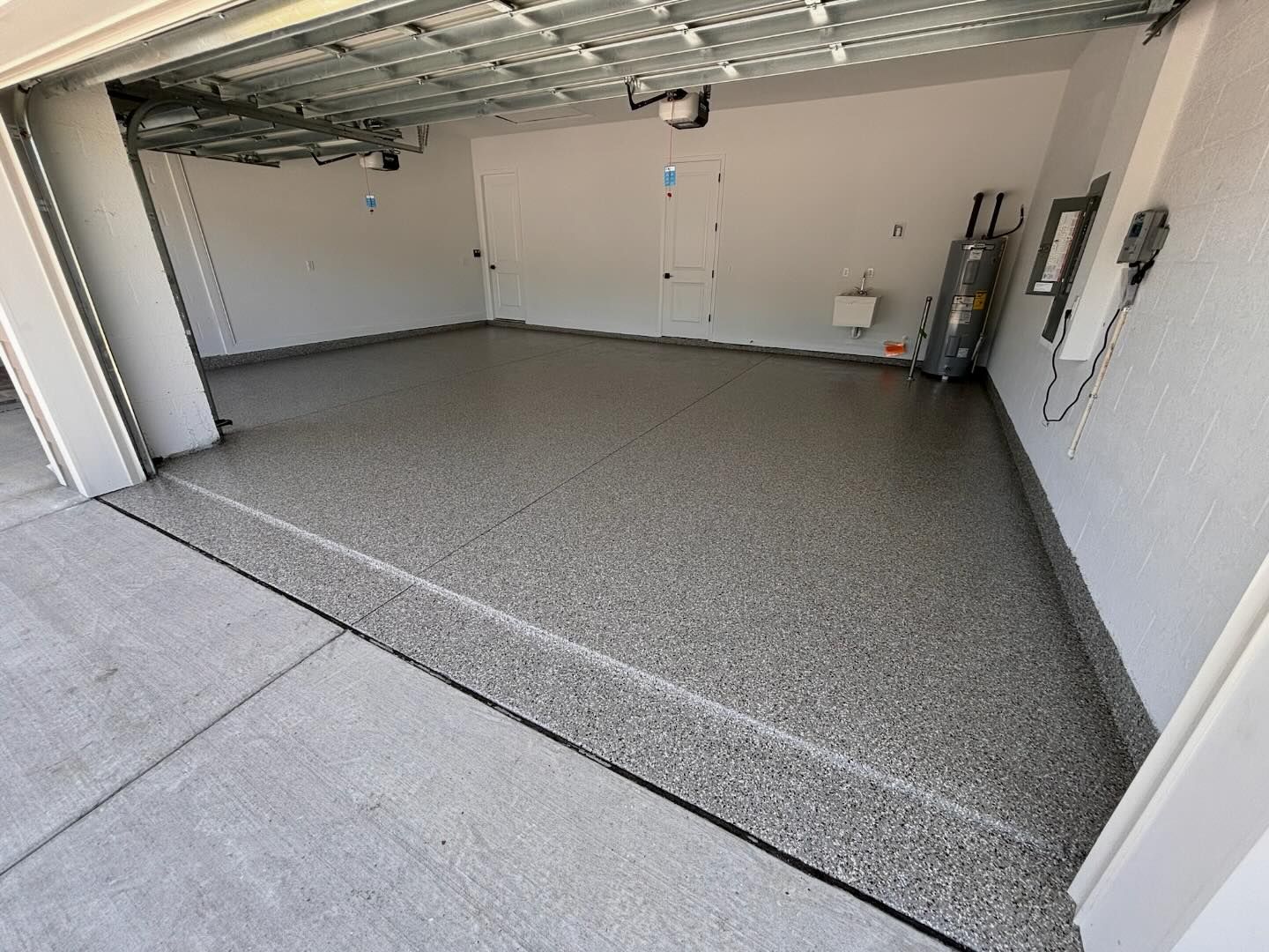 We make sure your concrete is level, all the cracks and chips are filled, and the surface is prepared with our polyaspartic compound ready to adhere.