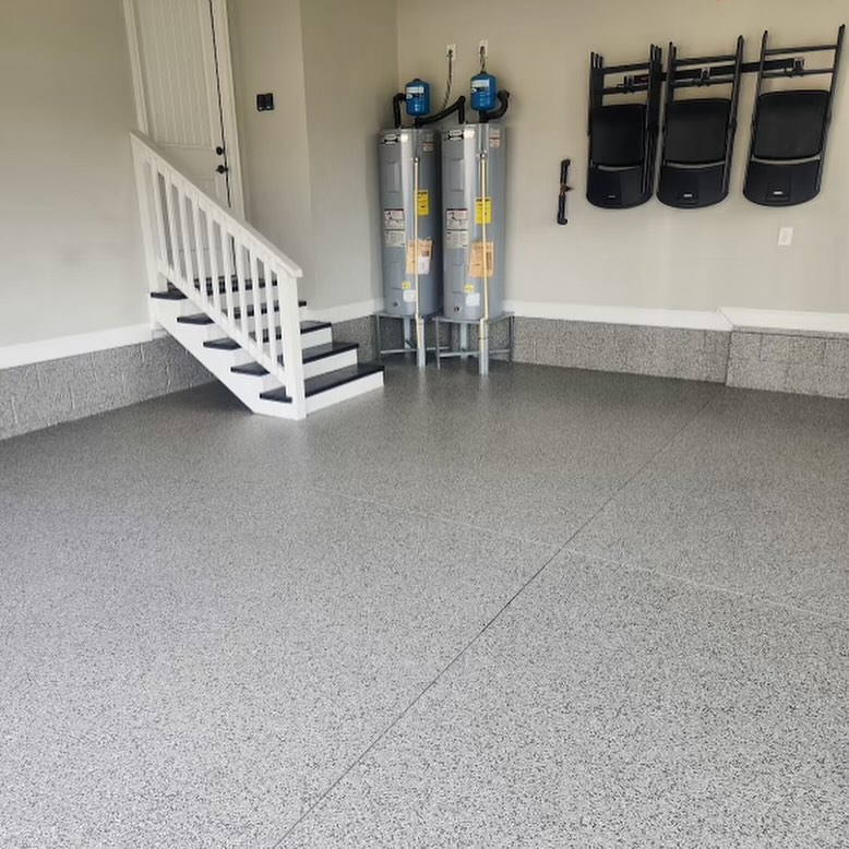 Titan Garage Flooring offers highly durable garage flooring and concrete coating systems that outperform traditional coatings. Our advanced flooring solutions are designed to resist chipping, cracking, and peeling, and they feature rapid curing times—you can walk on your new floors in just 6 hours and park your car or replace furnishings within 24 hours. We provide a wide variety of garage flooring finishes, including full broadcast options that mimic the look of natural stone, and a selection of over 150 colors to suit your style. If you’re in the Huntsville or Madison, AL areas, Titan’s flooring solutions will enhance the aesthetics and longevity of your concrete or garage floors.